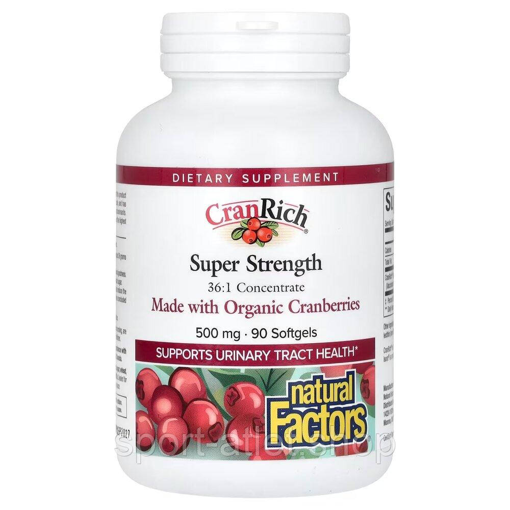 Екстракт журавлини Natural Factors CranRich Cranberry Concentrate Super Strength, 90 гелевих капсул для здоров'я сечовивідних